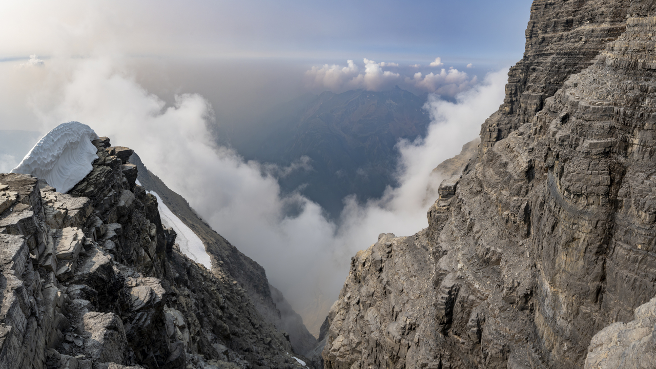 Above: Another peek at Baby Robson and the hut from the same 2023 trip as a few shots back, only this time it’s a few hours later on descent. Much of the earlier shot’s wildfire smoke had cleared out for this shot. Still pretty smokey though. I haven't yet had a "clear" trip up here.