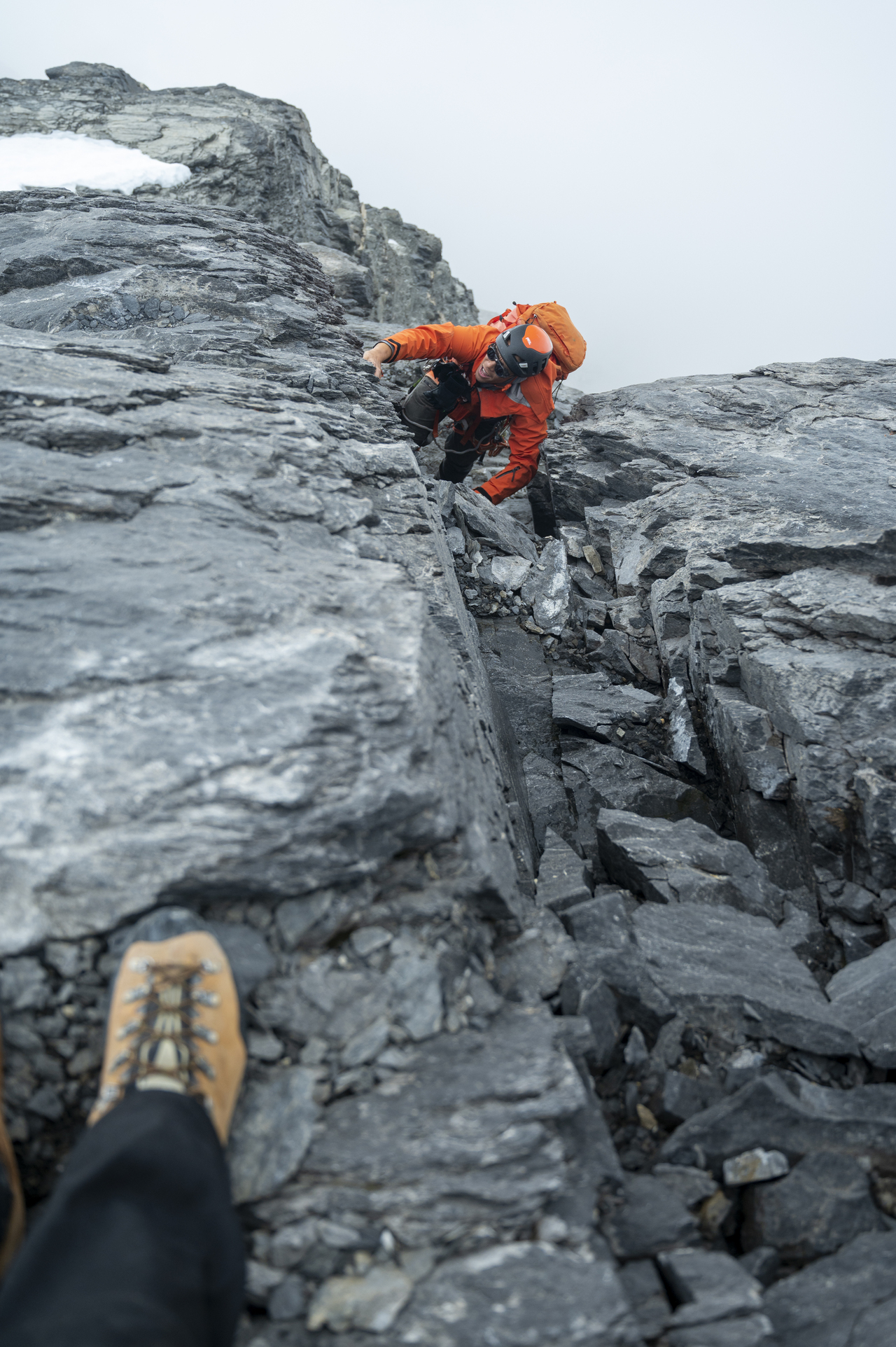 Above: An artsy shot from higher up on the first cliffbands after the hut. We’re watching the cloud formation sneak onto our face. This shot makes it look static but over the next few minutes it would grow to cover the face, then join a similar creature creeping up from behind and below to envelop us. I’m more used to this kind of thing but still get spooked. It’s like being hunted. Then caught. I’d watched a 1980 John Carpenter classic with Jamie Lee Curtis & Janet Leigh as a kid & had nightmares. My parents warned me but I watched it anyways, then had to move into their bedroom for the rest of the week. Those poor people.