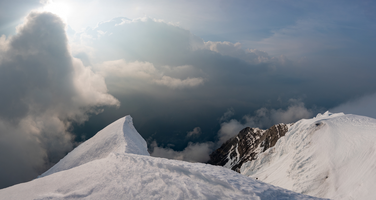 Above: Summit! Robson's summit ridge descends into the depths (heading northwest) frame right.