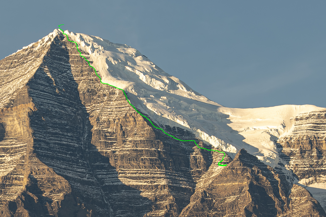 Not the same thing as saying this route is "easy and direct". Just that it's easier and more direct than more challenging routes. I've been on the route a few times and haven't yet had to rappel. The glaciated ramp up top Little Robson isn't so steep that I've felt the need to protect it, even when the ramp has been more ice than snowpack. And the route has a hut. I've started going after some of the tougher routes on this rock and to me, it makes good sense to know this route as a common descent option.